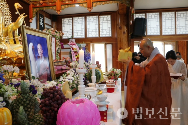 혜암 대종사 탄신99주년을 맞아 스님의 상당법어집과 진영이 봉안됐다. 4월26일 해인사 원당암 달마선원에서 봉행된 탄신기념법회<사진>에는 해인총림 방장 원각, 조계종 원로회의 의장 세민, 해인사 주지 향적, 혜암선사 문화진흥회 회장 성법 스님을 비롯한 문도스님들과 신도 500여명이 참석했다. 상당법어집 ‘공부하다 죽어라’는 연세대 철학과 신규탁 교수가 혜암 스님의 법어집 중 ‘상당법어’만을 추려 책에 담았다.