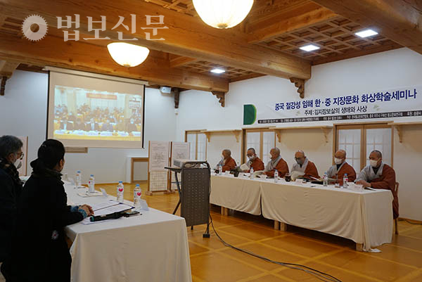 지장보살의 화신으로 추앙받는 김교각 스님의 당나라 입국을 기념하는 한중 합동 세미나가 온라인으로 코로나19와 국경의 벽을 넘어 진행됐다. 12월13일 순선 송광사와 중국 절강성 임해시 구화동사에서 진행된 ‘한·중 지장문화 국제화상학술세미나’는 ‘김지장보살의 생애와 사상’을 주제로 진행됐다. 중국 절강성 임해시가 주최하고 한국불교문화연합회와 중국 지주시 구화산 불교문화연구회가 공동주관, 송광사·홍법사·김지장성보박물관·천성산 미타암·천불정사·차만이 후원했다.