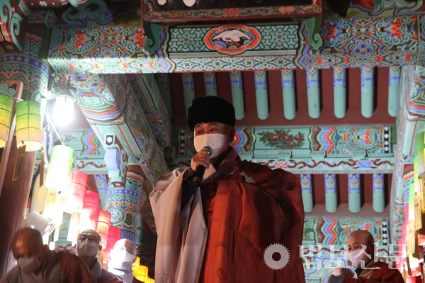 범어사 주지 경선 스님은 “지난해는 많은 사람이 고통받는 힘든 시기를 보내어야 했지만 신축년 새해는 코로나19도 극복하고 예전의 삶으로 돌아가는 희망의 해가 되길 바란다”며 “그동안 우리가 너무 인간 중심적으로만 살아온 것은 아닌지 참회하는 시간이 되길 바라며 나아가 각자의 위치에서 수행과 기도로 인간 본연의 자세, 주인공인 각자의 마음을 잘 챙겨 정진을 거듭하는 계기로 삼아 달라”고 당부했다.