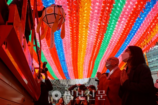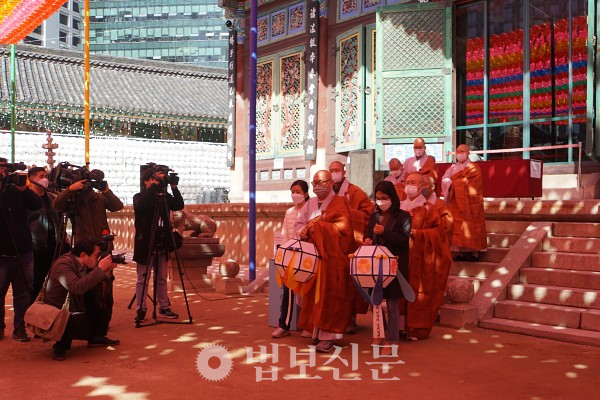 입장문 발표에 이어 금곡 스님과 헤이만 대표는 미얀마 민주화를 기원하며 생명평화의 연등을 부처님전에 올렸다. 미얀마 민주화를 위한 생명평화의 등은 부처님오신날까지 조계사 앞마당에 장엄된다.