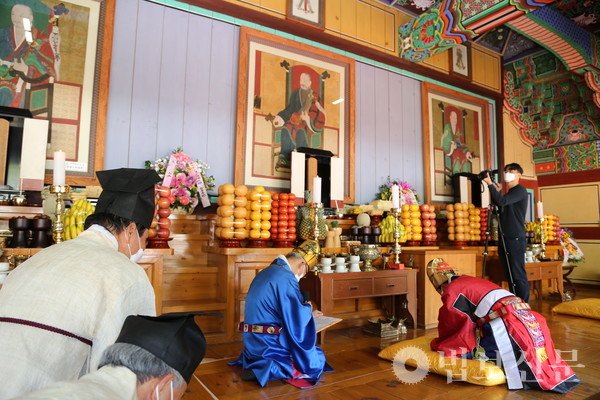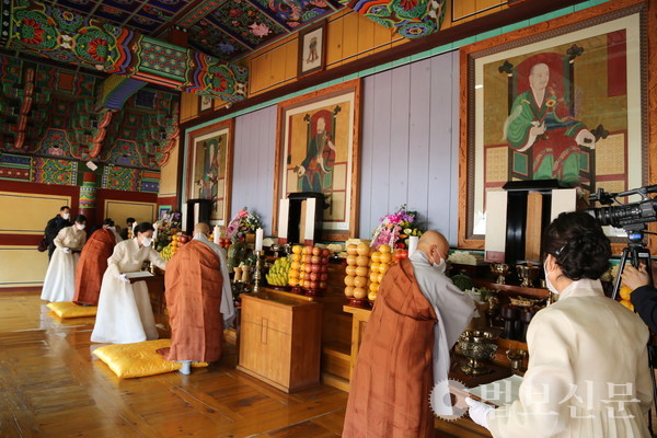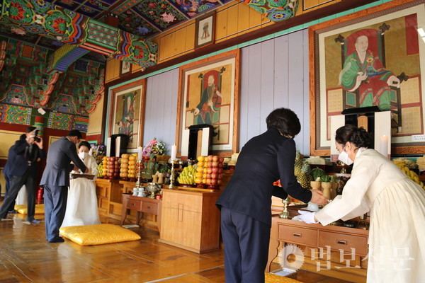 호국사찰 밀양 표충사가 불교식 추모 법회와 유교식 제향을 올리며 임진왜란 당시 승병을 이끌며 나라를 수호한 사명(四溟) 대사의 호국 정신을 기리고 종교 화합과 지역 발전, 코로나 종식을 서원했다.