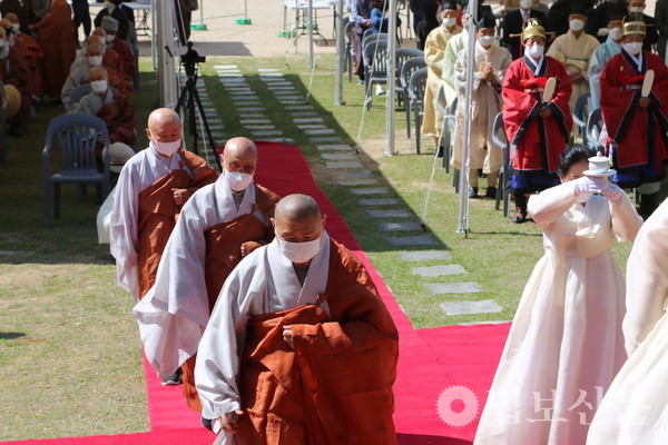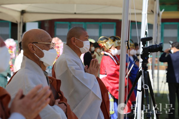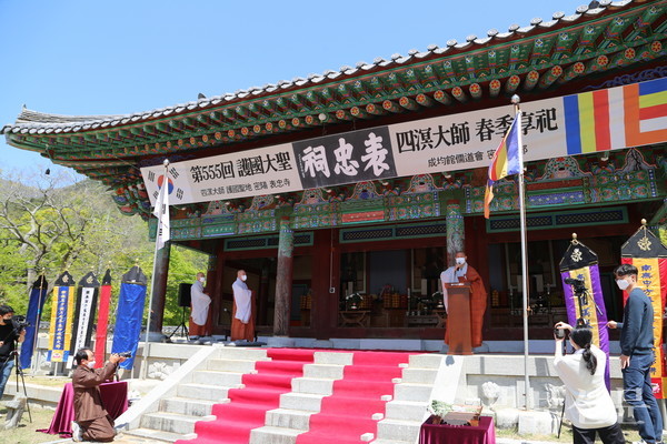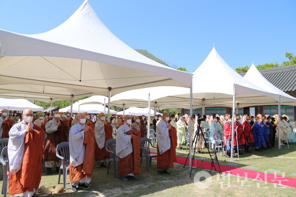 황걸연 밀양시의회 의장도 “국난의 상황에서도 나라 수호에 앞장서주신 삼대 성사의 호국 정신을 되새기는 자리를 마련해주심에 감사드린다”며 “코로나19의 어려움 속에서 어느 때보다 안정이 필요한 시기에 서로 돕고 사랑하고 지혜를 모아 이 시대 국난의 어려움을 극복하고 화합하는 세상을 가꾸어 참된 불국정토를 이룩할 수 있길 바란다”고 밝혔다.