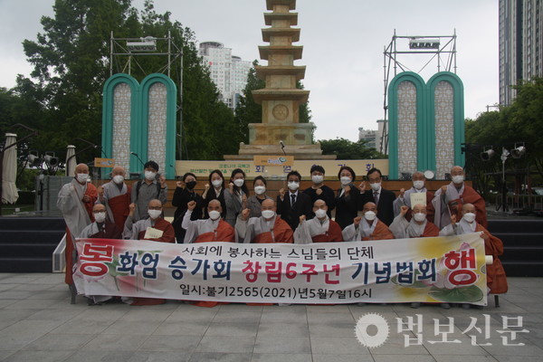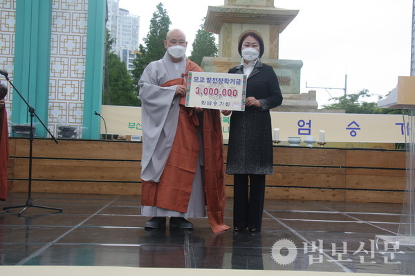 화엄승가회(회장 자인 스님)는 5월7일 부산 송상현광장에서 ‘화엄승가회 창립 6주년 기념법회’를 봉행했다. 이날 화엄승가회는 부산지역 7개 대학교 불교동아리에 각 100만 원씩 총 700만 원을 전달하며 불교동아리 활성화를 기원했다. 이 자리에서 각 불교동아리 대표에게는 각 10만 원 상당 문화상품권도 전달하며 활동을 격려했다. 부산불교교육대학에도 모교 발전 장학금 300만 원을 전달하며 학교 발전을 기원했다. 이날 화엄승가회가 인재불사를 위해 실천한 지원금 및 장학금은 총 1070만 원에 달한다.