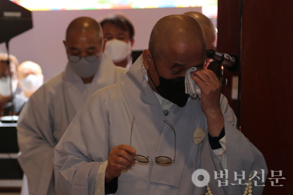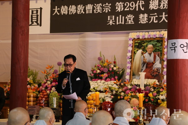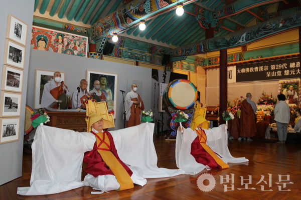 전 조계종 어산어장 동주 스님과 중요무형문화재 영산재 제50호 이수자 스님들이 집전한 영산재는 이날 새벽 4시부터 오전10시까지 봉행됐다. 이후 엄수된 49재 막재는 불교방송 진행자 성전 스님의 사회로 진행됐다. 분향, 강성다 헌다, 참성다 헌다, 개시거반에 이어 초헌다 헌다, 아헌다 헌다, 종헌다 헌다가 전개됐으며 수반, 전별다 헌다, 반야심경, 영상 법문, 문도 인사, 조가 등으로 회향됐다.
