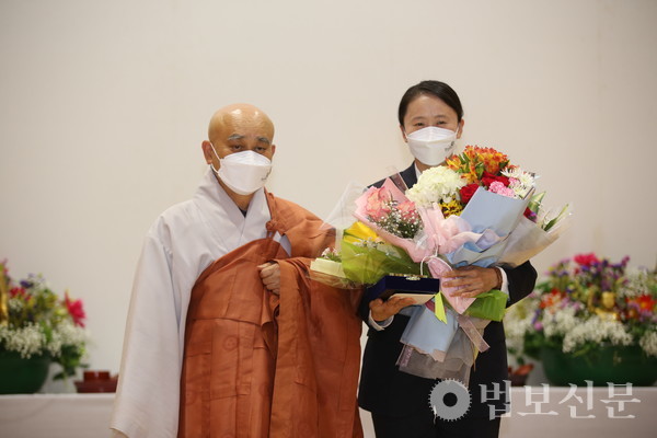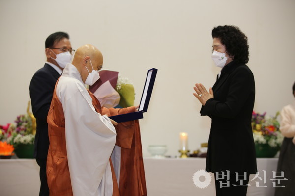 부산불교대상 시상식에 이어 부산불교연합회 공로패 시상도 마련됐다. 이 자리에서는 주영미 법보신문 기자가 불교 발전과 교권 수호의 공적을 인정받아 공로패를 수상했다.