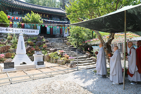 봉화산정토원(이사장 선건)이 6월8일 경내 수광전에서 ‘고(故) 선진규 원장 1주기 추모 법회’를 봉행했다. 이 자리에는 선건 봉화산정토원 이사장을 비롯해 사중스님과 유가족, 김해 지역 대덕스님, 신도회 임원 등이 참석해 고인의 포교 원력을 새겼다.