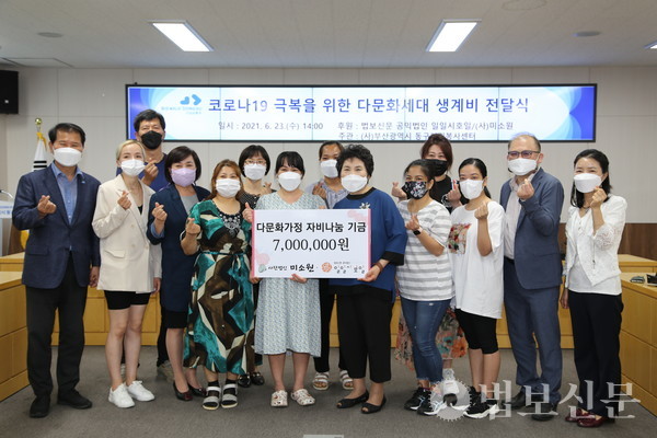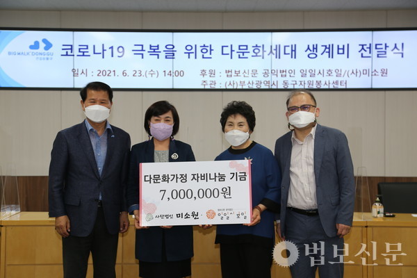 이날 박동범 법보신문 부산지사장은 “일일시호일은 고국을 떠나 한국 땅에서 정착해 살아가는 다문화 세대에 날마다 좋은 날을 선사하기 위해 불교계 정론지 법보신문이 만든 공익법인”이라며 “특히 최근에는 일일시호일 부산지부를 설립한 만큼 앞으로 부산지역 다문화 가정에 더 많은 관심과 응원을 이어갈 예정”이라고 밝혔다. 이어 “작은 지원금이지만 미소원과 함께 후원자들의 정성을 모아 전달하는 이 기금이 코로나로 인해 어려운 시기를 극복하고 한국 정착과 가족의 행복을 위한 밑거름이 될 수 있길 바란다”고 취지를 전했다.
