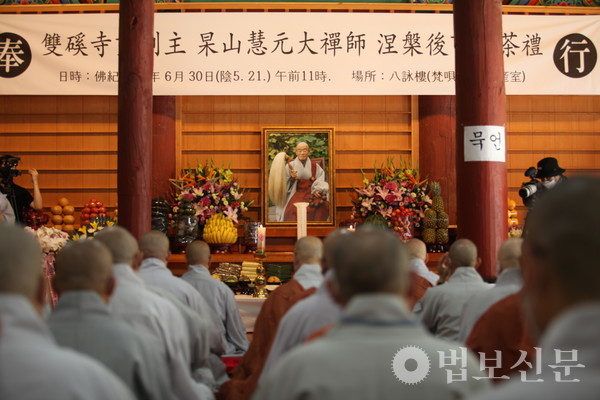 쌍계사 주지 영담 스님은 “대선사의 육신은 우리 곁을 떠났지만, 그 법신은 사부대중과 함께 영원히 계실 것”이라며 “큰스님의 유지를 이어 전법도생에 매진할 것”이라고 추모했다.