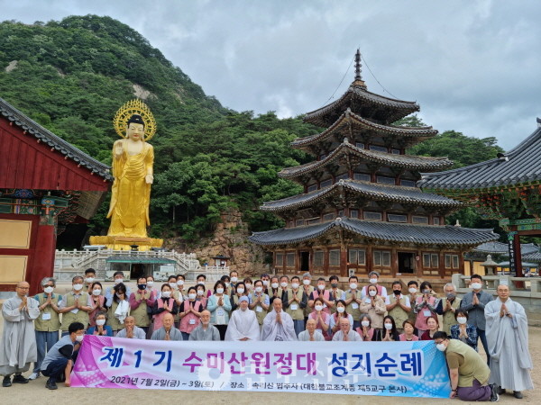 한국불교중흥을 위한 신도배가운동 봉은사 수미산원정대(회주 자승 스님)가 7월2~3일 충북 속리산 법주사(주지 정도 스님)에서 ‘수미산원정대 1기 성지순례’를 진행했다. 성지순례에는 회주 자승 스님을 비롯해 원정대 사무총장 탄원 스님과 50여명의 1기 대원들이 동참했다.