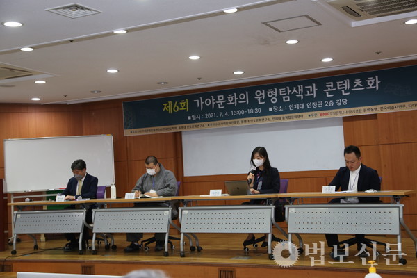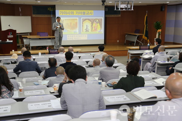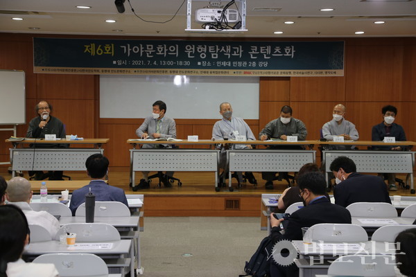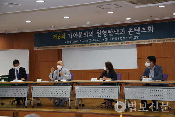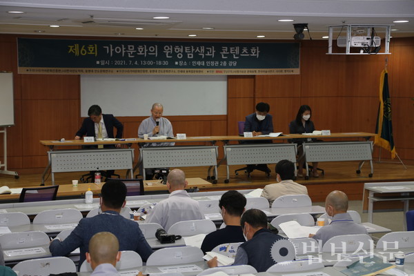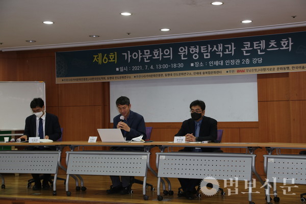 가야문화진흥원(이사장 송산 스님)·동명대 인도문화연구소(소장 장재진)·한국인도학회(회장 최종찬)는 7월4일 경남 김해 인제대 인정관 2층 회의실에서 ‘제6회 가야문화의 원형 탐색과 콘텐츠화’ 학술대회를 개최했다. 이날 행사는 코로나 확산방지를 위해 방역 지침을 준수하고 사회적 거리 두기를 시행하는 가운데 진행됐다. 별도의 외부 인사 초청이 없었지만 자발적으로 참석한 내빈과 불자들이 학술대회 마지막까지 경청하며 가야불교에 대해 관심을 표현했다.