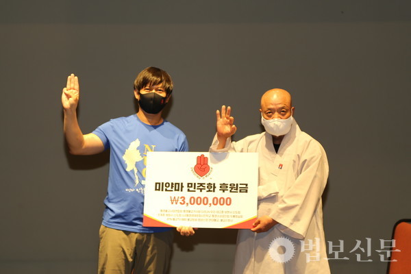 “지난 2월 미얀마 군부 쿠데타 이후 수많은 미얀마 국민이 목숨을 잃었습니다. 900명 이상이 죽고 5000명 이상이 행방불명되었으며 25만 명 이상의 전쟁 난민이 발생했습니다. 코로나로 인한 어려움도 심각합니다. 그렇지만 민주화를 향한 열망은 더 뜨겁고 훨씬 단단해지고 있습니다. 민주항쟁의 역사를 바탕으로 민주화를 성사시킨 한국처럼 미얀마도 반드시 민주화를 성취하고 싶습니다. 특히 인구 85% 이상이 불교 신자인 미얀마의 민주화를 위해 한국의 스님 그리고 불자님의 지속적인 관심과 응원이 절실합니다.”