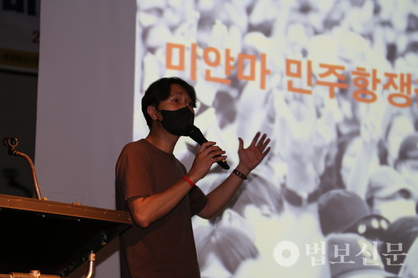 이어 권현태 미얀마민주주의네트워크 사무국장은 ‘미얀마 상황과 연대 활동’을 주제로 강의하며 “미얀마의 민주항쟁도 열악한 상황에서 이어지고 있는 상황에서 코로나 확산이 더 심각한 실정”이라며 “한국에서 모인 후원금은 전액 미얀마 국민의 민주항쟁과 코로나 극복을 위한 기금으로 전달된다”고 밝혔다.