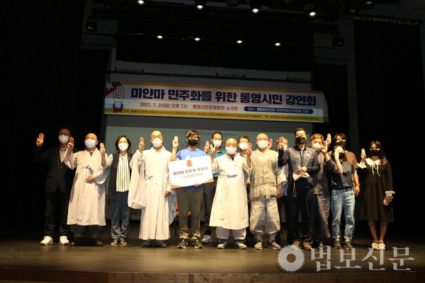 통영 불교계와 지역 시민단체가 함께 미얀마 군부 쿠데타의 실상과 민주항쟁의 현황을 공유하고 미얀마 민주화를 위한 염원을 모으는 장을 마련했다.