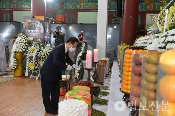 주호영 전 국민의힘 원내대표와 대권후보 최재형 전 감사원장은 7월23일 오전 김제 금산사를 찾아 조문하고 월주 스님의 극락왕생을 기원했다.
