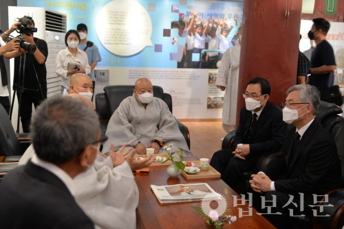 주호영 의원과 최 전 감사원장은 조문 이후 조계종 총무원장 원행 스님을 비롯한 문도스님들과 환담을 나눴다.