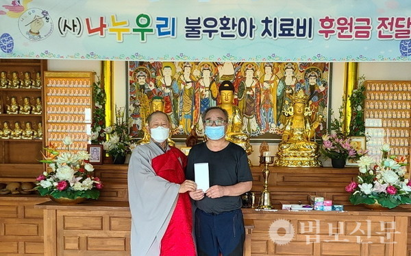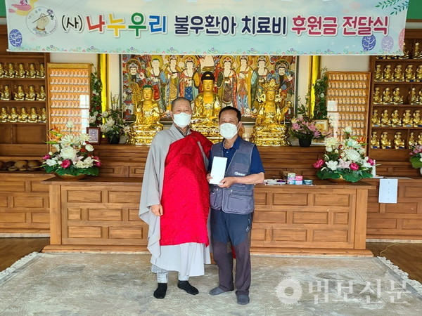 사단법인 나누우리(이사장 도산 스님)는 7월3일 밀양 법성사(주지 만우 스님)에서 ‘나누우리 2021년 2/4분기 불우환아 치료후원금 전달식’을 봉행했다.