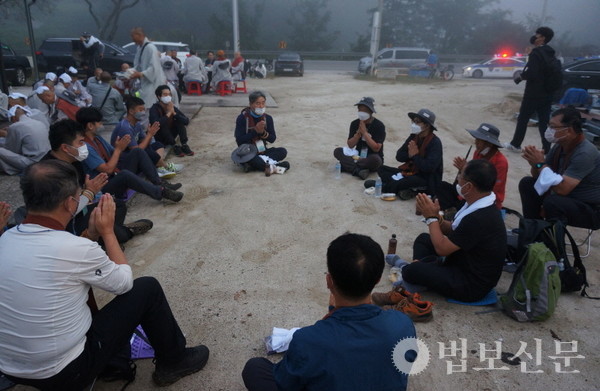 한편 3일차 회향지 화엄사에는 조실 명선, 주지 덕문 스님을 비롯해 대중스님과 불자들이 순례단을 맞이했다. 명선 스님은 순례대중 한 명 한 명에게 108염주와 단주를 걸어주며 불교중흥과 국난극복의 발원으로 천릿길 순례에 나선 순례대중을 격려했다.