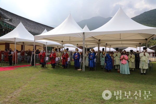 축전의 시작을 알린 ‘제556회 호국대성 사명대사 추계향사’는 10월6일 표충사 경내 표충사당에서 봉행됐다. 매년 봄·가을 불교와 유교의 합동 추모의식으로 봉행 되어온 이 법석은 올해도 코로나 확산방지를 위해 거리두기 수칙을 준수하는 가운데 약식으로 엄수됐다. 행사에는 불교를 대표해 표충사 주지 진각, 울산 월봉사 주지 보화, 청하암 자허 스님 등 대덕 스님과 불자 등이 참석했다.