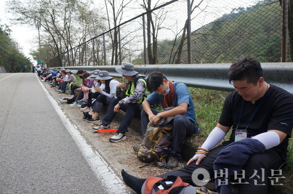 김나현 불자는 “지난해 자비순례를 언론을 통해 접한 후 큰 감동을 받았고, 올해 삼보사찰을 걸어서 참배한다고 해 남편과 두 딸의 동의를 얻어 참가를 신청했다”며 “갑작스런 참여로 준비가 부족해 처음 며칠은 고생했지만, 도반들의 도움과 격려로 어려움을 이겨내고 있다”고 말했다. 이어 “불법승 삼보에 공양하는 마음으로 걷고 있다. 함께하는 모든 분들이 건강하게 순례를 마쳤으면 좋겠다”고 덧붙였다.