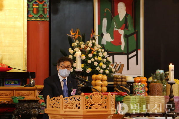 이날 통도사 주지 현문 스님은 봉행사에서 “자장율사의 가르침은 신라시대 난세를 극복하고 백성들에게 의지처가 되어주며 찬란한 불법의 꽃을 틔웠고 그 창건 이념은 오늘날까지 면면히 전해져 국난 속에서도 정법을 수호하고 민족 정신을 일깨우고 있다”며 “앞으로도 통도사의 사부대중은 불교 이념의 사회화에 역점을 두고 우리나라의 역사와 전통 민족문화의 창달을 책임지는 불지종가 국지대찰의 소임을 다할 것”이라고 발원했다.