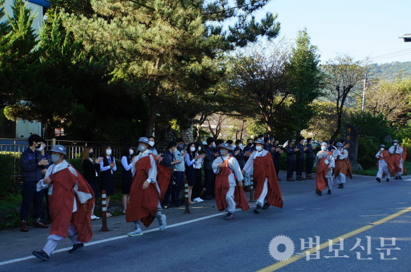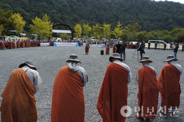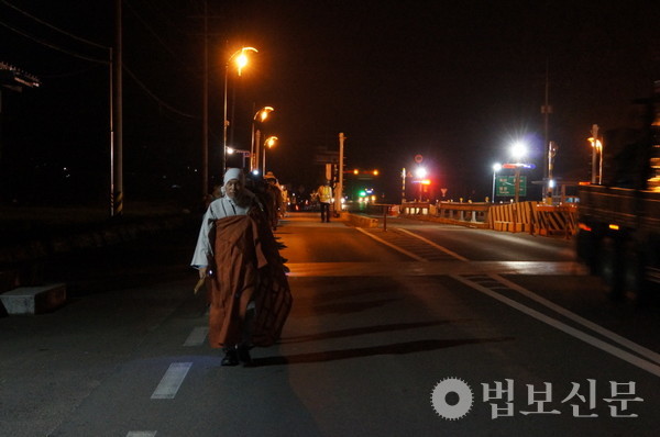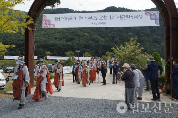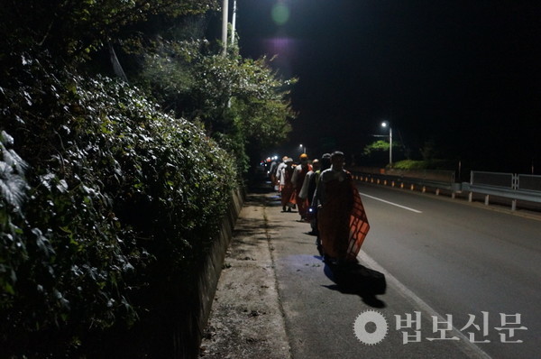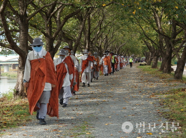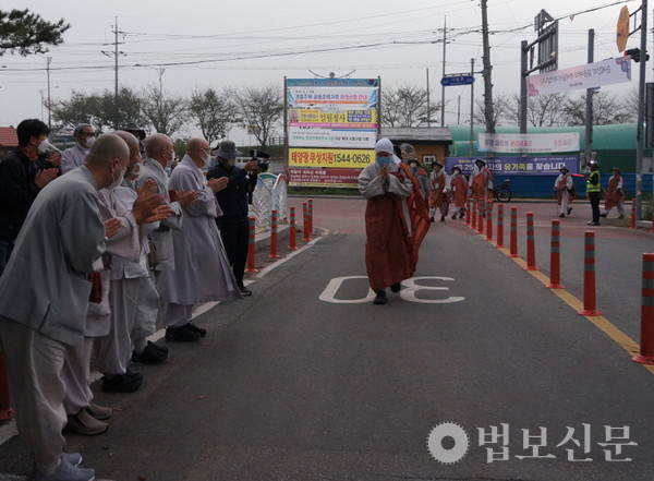 이날 천리순례 15일차 순례길에는 포교원장 범해, 총무부장 금곡 스님을 비롯해 총무원 부실장 및 국장스님과 중앙종회 부의장 각림, 만당 스님 등이 동행했다. “소임을 마치고 기회가 되면 순례에 꼭 동참하고 싶다”고 밝힌 총무부장 금곡 스님은 “상월선원 회주 자승 스님과 함께하는 사부대중 모두 마지막 날까지 건강하게 회향하길 서원한다”며 “삼보사찰 천리순례가 곧 다가올 위드 코로나 시대에 꿈과 희망을 주는 자리가 되길 바란다”고 말했다.