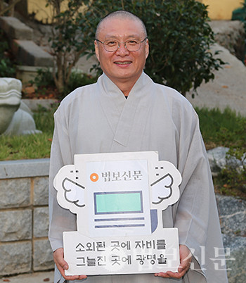통영 보현사 주지 묵원 스님이 법보신문 법보시캠페인에 동참하며 “불교와 지역사회의 소통 창구가 되어주는 법보신문에 고마움을 전한다”고 격려했다.