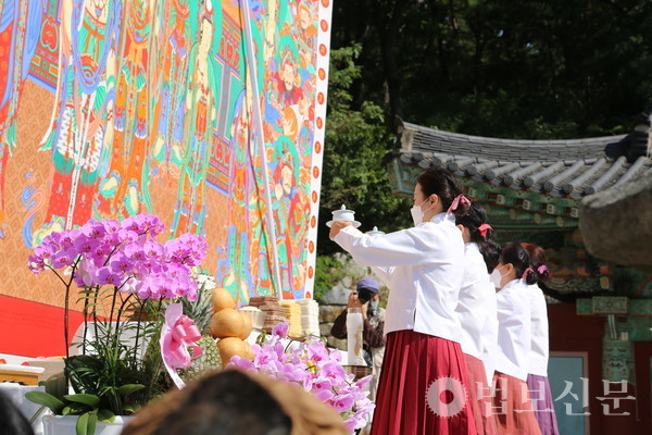 경남 창원시의 천년고찰 불모산 성주사가 오여래괘불탱 점안식을 갖고 불모산영산재를 봉행하며 장엄한 가을 산사의 법석을 펼쳤다.