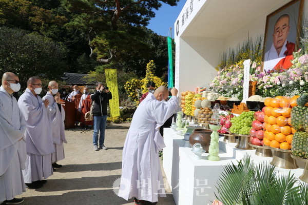 마지막으로 성타 스님을 비롯해 보선, 법달, 정우, 덕민, 종우, 원경, 정문, 원학, 영배, 보인 등 스님들과 김형규 법보신문사 대표, 남배현 조계종출판사 대표 등의 헌화와 문도대표 혜원 스님의 인사말, 사홍서원을 끝으로 영결식이 마무리됐다.
