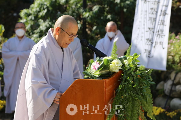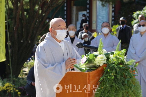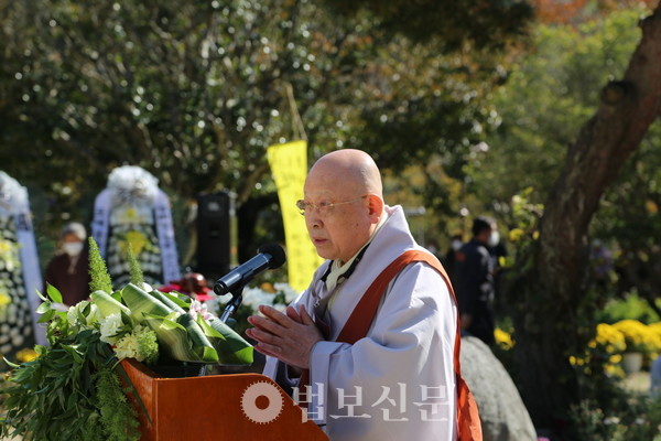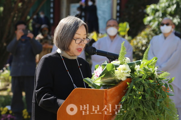 “스님께서 적요의 세계로 드셨지만 저희는 스님께서 대승보살처럼 이 사바세계로 다시 오셔서 부족한 저희 중생을 교화해주시길 기원합니다. 스님의 지혜와 자비행이 다시 어디선가 꽃피길 기원합니다.”(이영경 동국대 경주캠퍼스 총장)