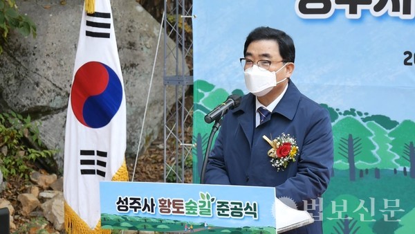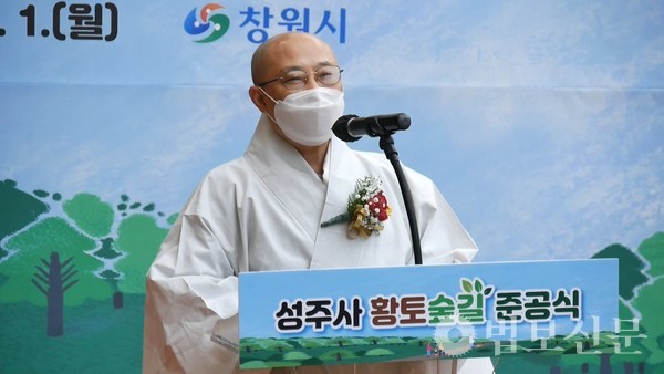 성주사 주지 법안 스님은 축사에서 “불모산 성주사 입구에 조성된 숲길이 황톳길로 조성될 수 있도록 힘써주신 창원시에 깊이 감사드린다”며 “시민 누구나 안전하게 오가며 숲의 향기, 우리 지역 전통문화의 향기를 체험할 수 있는 장으로 발전하길 기원한다”고 전했다.