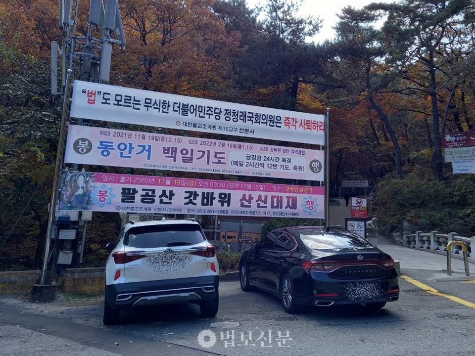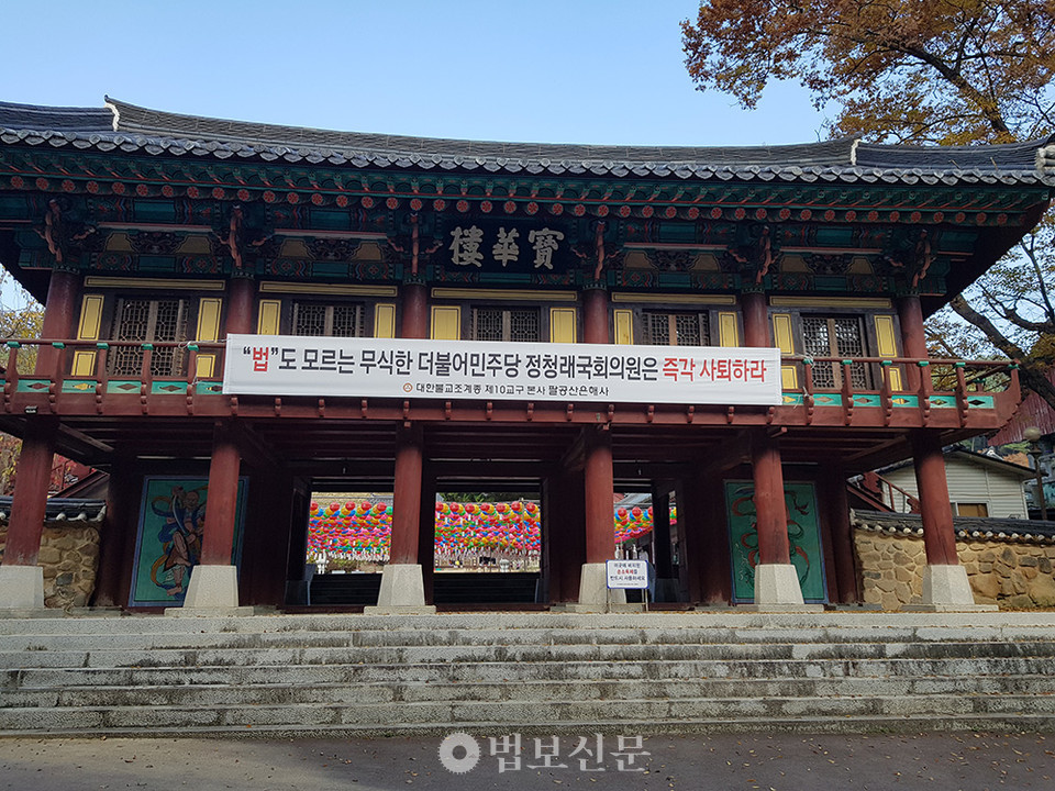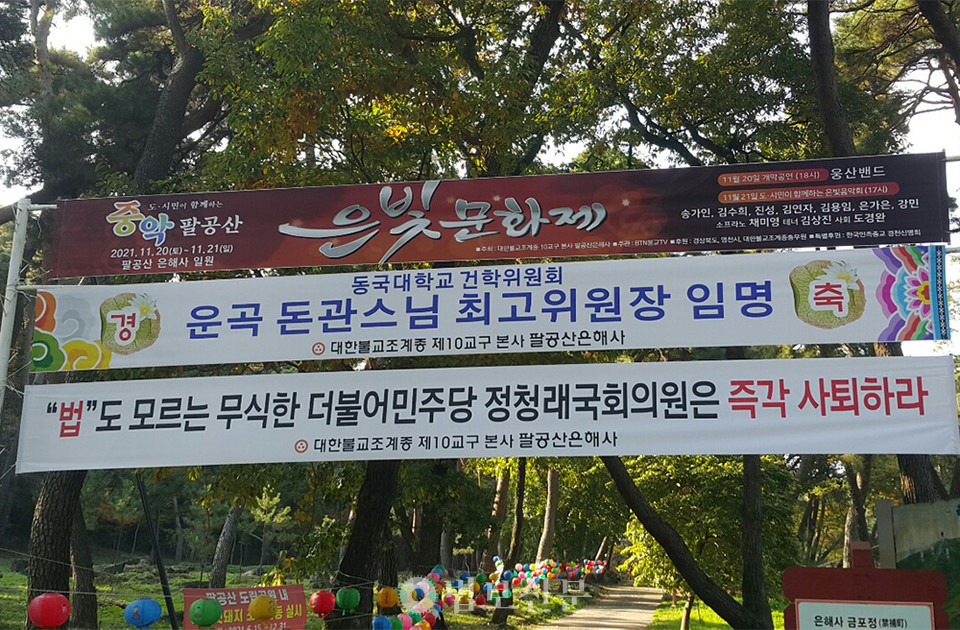 조계종 제10교구 은해사와 주요 말사가 더불어민주당 정청래 의원(서울 마포을)의 의원직 사퇴를 촉구하는 현수막을 잇달아 게시했다.