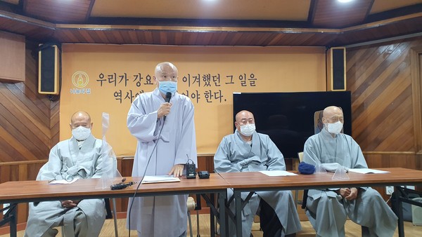 나눔의집 이사 혜일, 덕림, 평중, 원광 스님은 11월8일 광주 나눔의집 교육관에서 긴급 기자회견을 개최하고 이같이 밝혔다. 이들은 “나눔의집은 현재 임시이사체제로 운영되고 있는 상황으로 그 어느 때보다 더욱 투명하고 법에 정해진 절차에 따라 합법적이면서도 합리적으로 운영돼야 한다”며 “그러나 개최 통보 절차의 위반으로 이사회 개최가 불가하다는 법인감사의 지적에도 임시이사 5인은 임시이사회를 강행해 나눔의집 예산안을 통과시키는 등 불법을 자행하고 있다”고 밝혔다.
