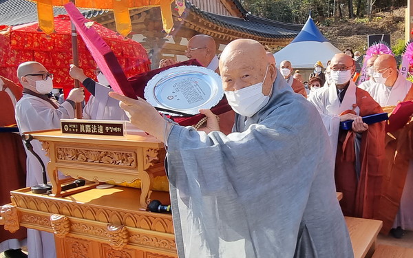특히 법석에서는 성담사 불사에 기여한 표창패 및 공로패 시상이 마련됐다. 이 자리에서 조계종 종정 진제 스님은 팔공총림 동화사 회주 의현 스님에게 성담사 창건불사에 기여한 공로로 공로패를 전달했다. 또 △한국전쟁 당시 해인사 장경각 지붕 위에 대형 태극기를 덮어 폭격으로부터 성보 수호 △1996년 12월8일 인도 사르나트 한국 대승계맥 수계 비구니 승단 탄생 △인도 수바흐르티 종합대학에 불교대학 설립에 기여한 내용으로 각각 표창패도 전달했다. 이밖에도 재가불자를 대표해 이옥희 보살에게도 성담사 건립 불사의 기여로 공로패를 전달했다.