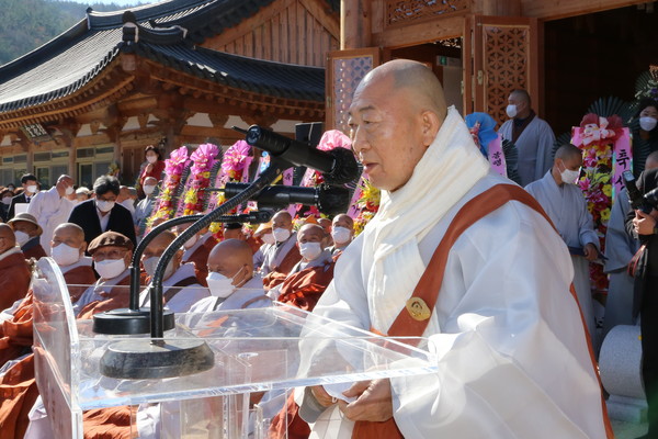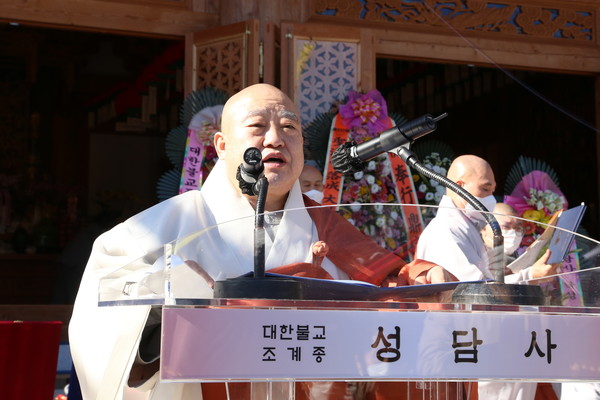 조계종 총무원장 원행 스님은 축사에서 “종정 예하께서는 이곳 남해섬에 천혜의 정진 도량 성담사를 창건하고 옛 선사의 조사가풍에 따라 간화선 수행 공동체 도량을 창건하셨으니 종도들의 홍복”이라며 “불교의 혜명을 잇는 원력 대작불사 낙성을 수희찬탄하며 세계 속에 한국 선불교가 위상을 더욱 높이고 자긍심이 사해로 넘칠 수 있도록 사부대중이 함께 정진하고 외호하며 깨달음을 향해 나아가자”고 염원했다.