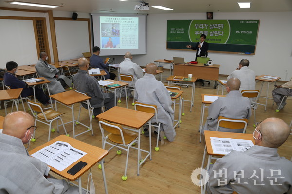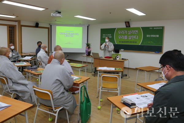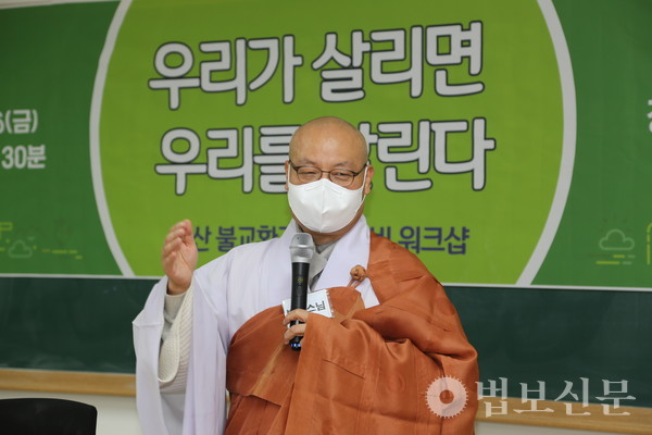 특히 이날 부산불교환경연대 준비위원회는 첫 워크숍을 통해 부산지역 환경 현안과 대응 방안을 모색했다. 김해창 경성대 환경학과 교수가 ‘기후위기와 부산의 환경문제’를 주제로 강의했으며 부산 녹색사찰 1호 도림사 주지 정찬 스님이 ‘환경위기 시대 녹색사찰 만들기’를 주제로 사례발표의 시간을 가졌다. 이어 ‘부산불교환경연대, 어떻게 만들 것인가, 어떻게 활동할 것인가’를 주제로 하는 브레인라이팅 대화의 장도 마련됐다.