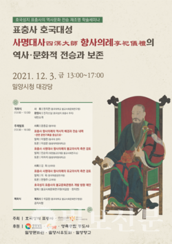 동국대 경주캠퍼스 불교사회문화연구원(원장 석길암)이 밀양 표충사(주지 진각 스님)와 12월3일 오후 1시 밀양시청 대강당에서 학술세미나를 개최한다.