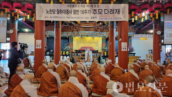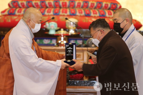 특히 시상식에 앞서 노천당 월하대종사 열반 18주기 추모다례재가 봉행됐다. 이 자리에서 노천문도회 대표이며 영축총림 통도사 방장 성파 대종사는 추모다례 전날인 12월13일 조계종 종정추대위원회에서 만장일치로 차기 종정에 추대된 사실을 은사 월하 대종사의 영전에 고하며 조계종 제9대 종정을 지낸 은사 스님의 유지를 이어 종단 발전에 진력할 뜻을 밝혔다.