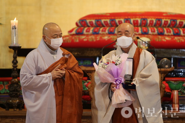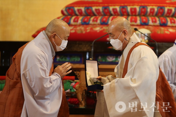 성파 스님은 “코로나가 심각한 상황에서도 참석해주신 여러 스님께 깊이 감사드린다”며 “은사 스님께서 평소 ‘중노릇 잘하라’ ‘평상심이 도’라고 당부하셨던 가르침을 새기며 종단과 한국불교를 위해서 헌신할 것”이라고 발원했다.