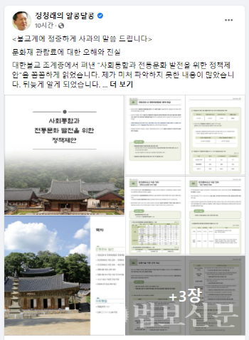 정 의원이 자신의 페이스북에 사과문을 게재한 것은 지난달 25일에 이어 이번이 두 번째다. 그러나 불교계의 반응은 여전히 싸늘하다.