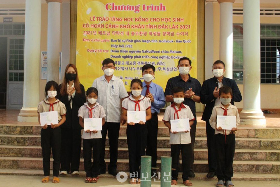 전북베트남교류증진협의회(이사장 회일 스님)와 태고종 전북종무원(원장 진성 스님), 마이산탑사(주지 진성 스님), 복성산업개발(회장 박금태)이 함께 베트남 닥락성의 학생들에게 자전거와 장학금을 전달했다. 12월 3일, 8일, 11일 진행된 이번 행사는 가정형편이 어려운 닥락성 지역의 학생들에게 교통수단을 마련해주고 학업과 일상생활에서 겪는 경제적 부담을 줄여줘 공동체의 일원으로 건강하게 성장할 수 있도록 지원하고자 진행됐다.