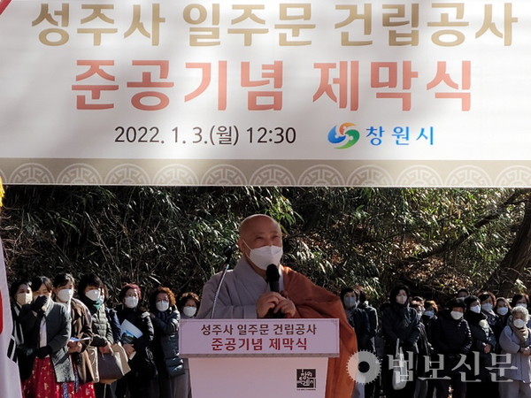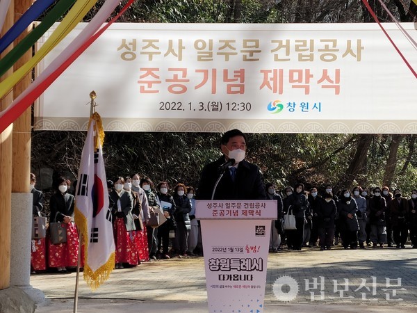 창원을 대표하는 천년고찰 불모산 성주사가 일주문 준공 제막식을 봉행했다.