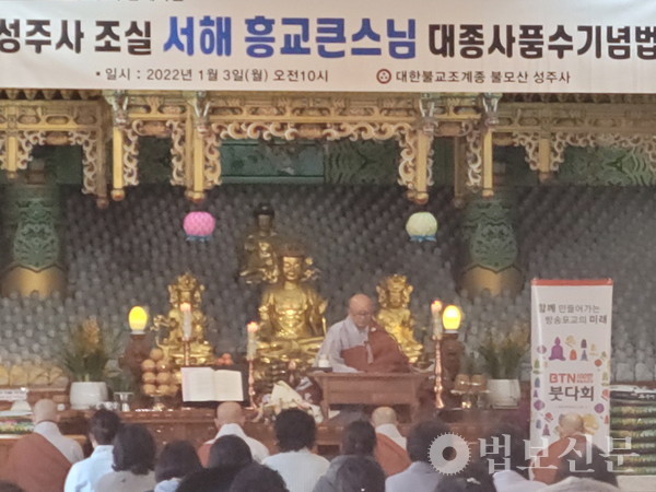 한편 이날 성주사는 일주문 준공 제막식에 앞서 음력 12월 초하루를 맞아 ‘성주사 조실 서해 흥교 대종사 품수 기념 법회’를 봉행했다.