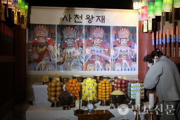 법회가 봉행된 범어사 천왕문은 지난 2010년 12월15일 방화로 완전히 소실된 아픔이 있다. 1년 3개월에 이르는 복원 불사를 거쳐 지난 2012년 3월26일 새롭게 건립됐다. 이후 범어사는 해마다 음력 12월 보름을 맞아 사중 스님과 불자들이 동참한 가운데 사천왕재를 봉행하며 시민 안녕과 도량 안전을 기원하고 있다.