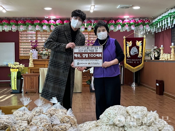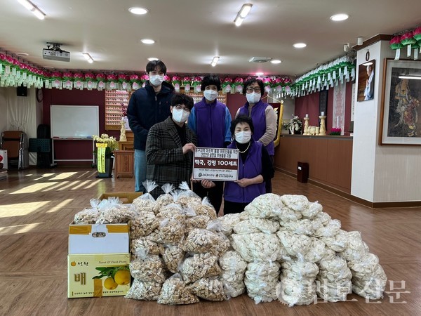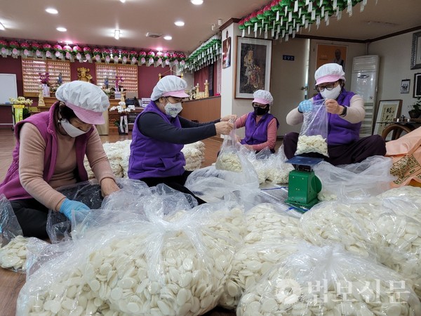 사단법인 미소원(이사장 장유정)은 1월20일 미소원 법당에서 ‘2022년 임인년 새해 설맞이 이웃을 위한 자비의 명절물품 전달식’을 마련했다. 이날 미소원은 동구노인복지관을 통해 어르신 100세대에 전달할 것을 비롯해 개금종합사회복지관 등 미소원 협력 복지단체 및 자원봉사자를 통해 총 400세대에 명절 물품을 보시했다. 이날 미소원이 이웃에 보시한 명절 물품은 떡국 떡과 강정이다. 품질 높은 제조사 선정은 물론 미소원 회원들이 직접 정성으로 개별 포장해 온기를 더했다.
