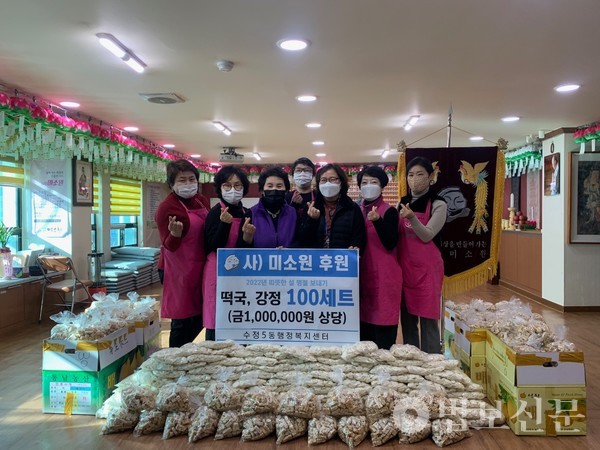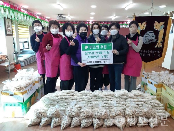 장유정 미소원 이사장은 “작은 나눔이지만 설 명절을 맞아 우리 이웃에 회원들의 따뜻한 마음을 전하는 계기가 되길 바란다”며 “앞으로도 미소원은 지역사회에 꼭 필요한 보시를 실천하며 이웃의 건강과 행복을 기원할 것”이라고 전했다.