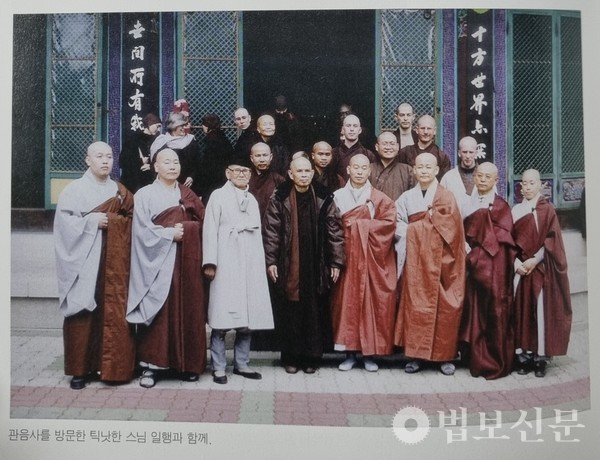 관음사는 지난 2003년 틱낫한 스님이 방한 일정 중 조계총림 송광사와 부산을 방문할 당시부터 지금까지 20여 년 가까이 틱낫한 스님의 플럼빌리지 수행 공동체와 깊은 인연을 이어 온 도량이다.