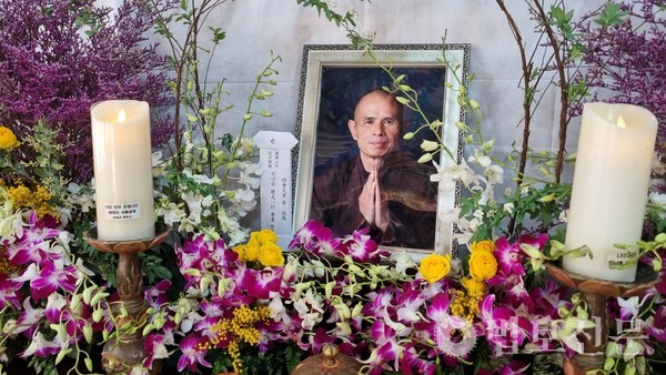 부산 관음사(회주 지현 스님)는 틱낫한 스님의 원적 소식이 국내에 알려진 1월22일 경내 수광보전에 분향소를 마련했다. 특히 1월28일 초재를 시작으로 3월11일까지 매주 금요일 오전11시 틱낫한 스님의 극락왕생을 염원하는 49재를 봉행할 예정이다.