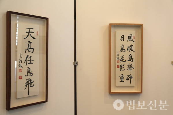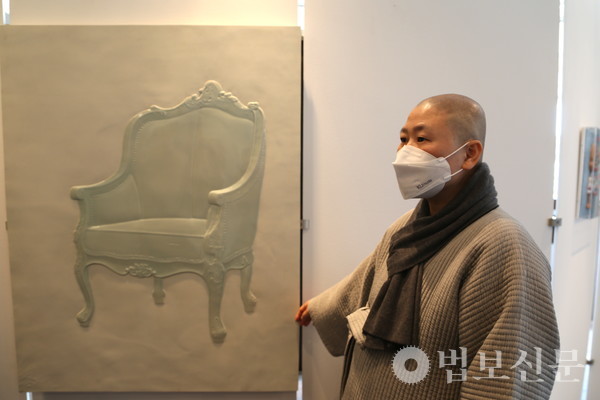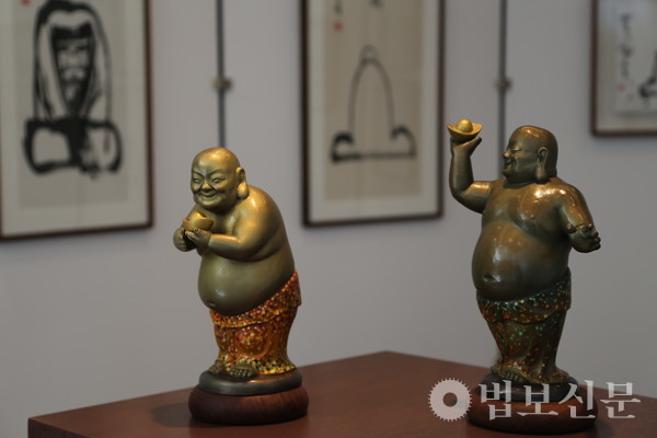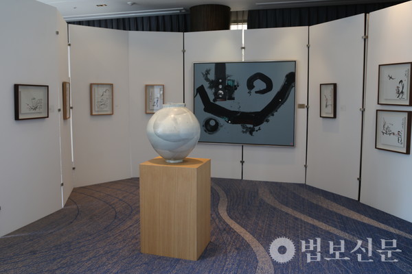 전시에서 주목할 작품은 중요무형문화재 단청장이자 불화장인 석정 스님의 초기 달마도다. 주석 스님의 은사 스님이 남기신 유품이며 이번 전시의 각별한 소장품으로 손꼽힌다. 조계종 차기 종정 성파 대종사의 글씨도 눈길을 끈다. 일장 스님의 ‘태평가’ 등 선화도 만날 수 있다. 전통 불화기법을 차용하여 이 시대의 불화를 조성하는 박경귀 작가의 ‘자비’, 도자회화라는 새로운 장르를 구축한 이승희 작가의 프레임 속 도자기 체어, 변훈 작가의 달항아리, 서칠교 작가의 포대화상 등 현대미술계에서 주목받는 불교 및 불교관련 작품도 반갑다.