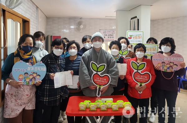 부산 사상구 광명사 스님과 신도들이 함께 장기기증 희망등록 캠페인에 동참하고 난치병 환우 돕기 지원금을 보시하며 생명나눔의 가치를 공명했다.