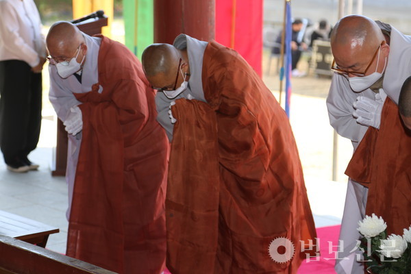 표충사 주지 진각 스님도 인사말에서 “코로나의 어려움이 아직 상당한 시기에도 사명대사의 호국 정신을 기리는 이 자리를 찾아주신 대덕 스님과 내빈 여러분께 깊이 감사 드린다”며 “표충사 대중은 항상 나라를 위해 헌신하신 선대 스님들의 원력과 정신을 이어받아 우리 시대 참된 호국의 가치를 실현해 나아가는 데 앞장설 것”이라고 발원했다.